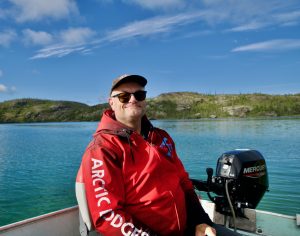 Seems that, for now at least, the Apps had it right, and although somewhat chilly, the 1 hour and 45min. trip was as smooth as could be. On the way over Chris regaled us with the Arctic Circle names of the many islands we passed, including ones named Charley, Ross, Ed’s, Jim and Mary. I’m now having second thoughts about applying to have High Rock Bay renamed, because if Ed can have is own island, why can’t Kenny and I have a bay named after us?