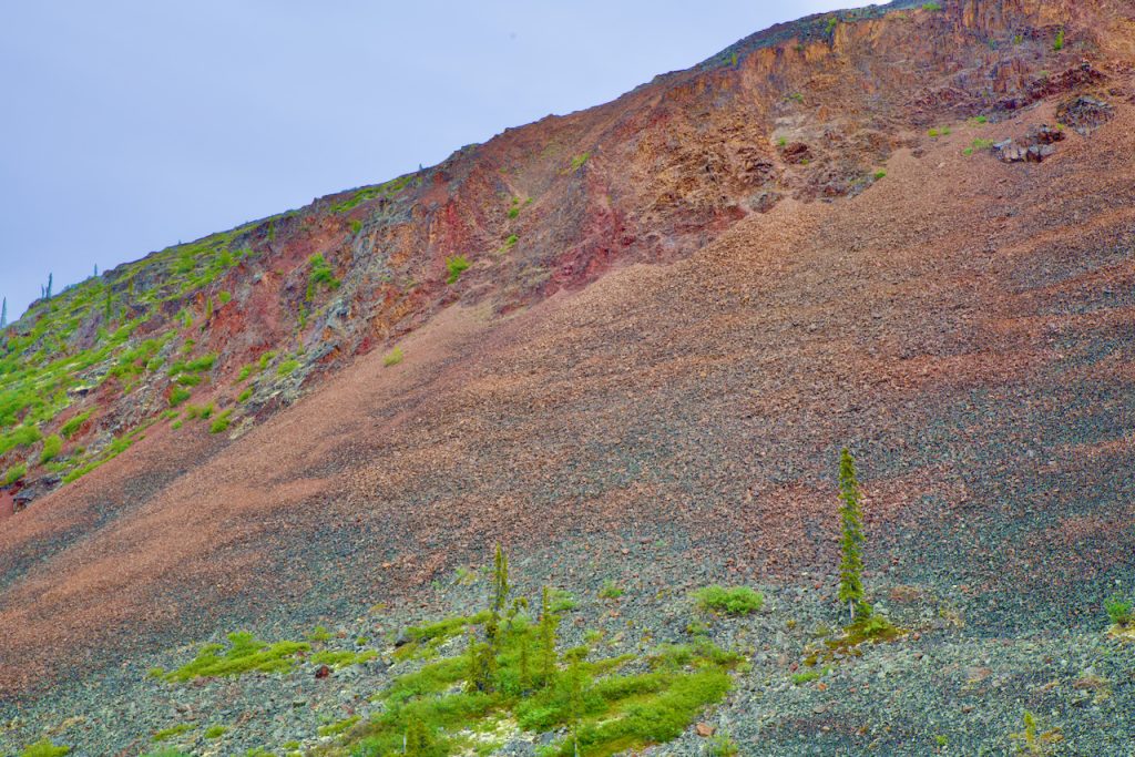 On the way home we stopped to admire and photograph a stunning geological formation which Chris referred to as Red Rock. It’s a relatively high promontory, covered in what appears to be machine crushed red stone, with patches of green vegetation thrown in for contrast. It was really exquisite, and I only wish we had seen it on a sunny, rather than cloudy day.