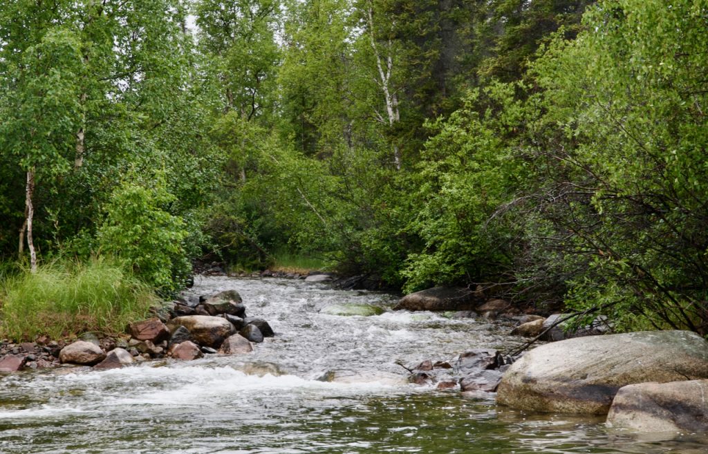 As previously described, the area in the vicinity of the lodge features numerous high promontories, sheer rock walls with colourful splashes of mineralization , and long, deep bays, the shorelines of which are often strewn with immense, lichen covered boulders. There is also a moderate amount of forest cover in many places.