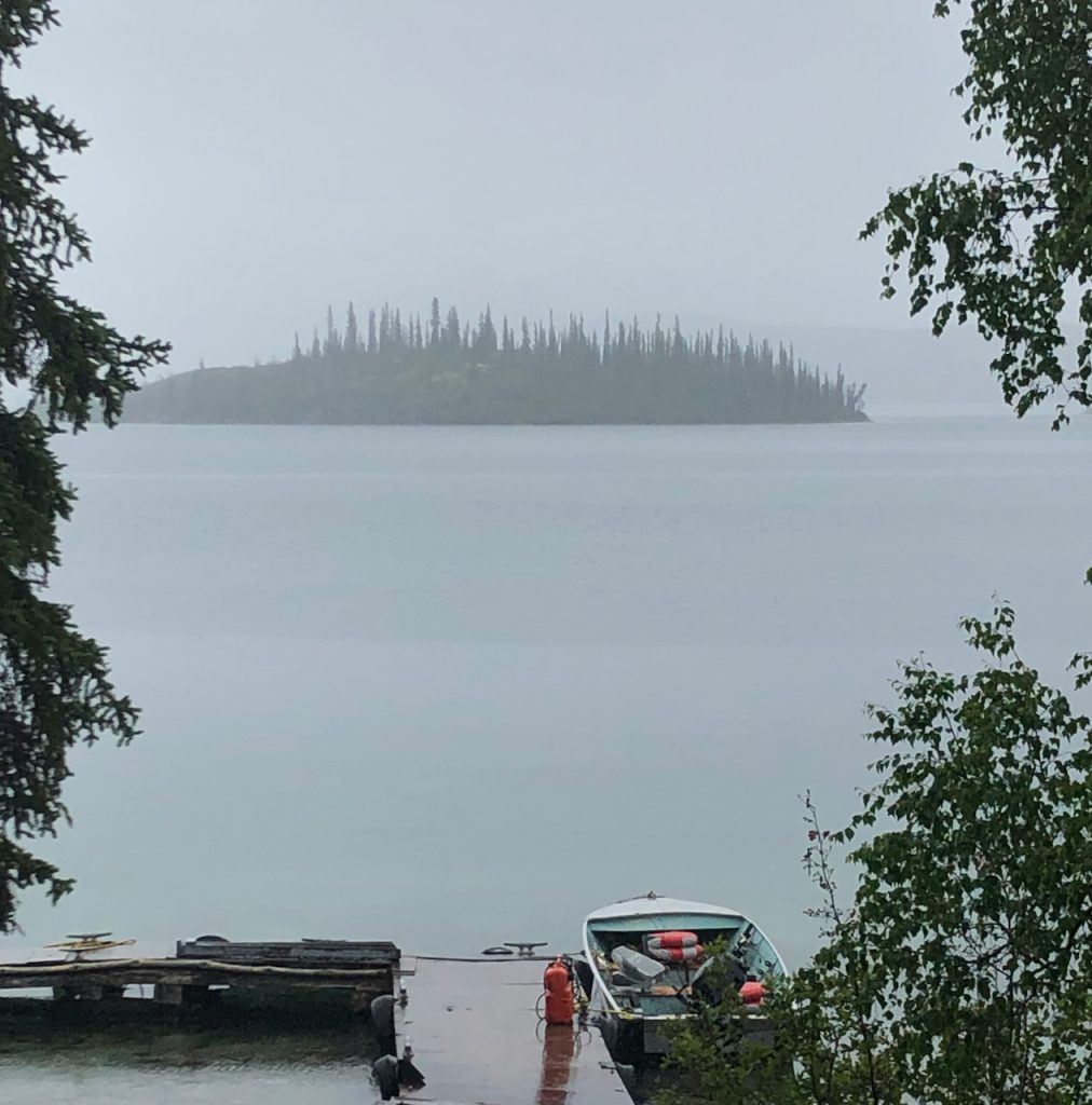 For some, a little thing like torrential rain was not going to put a damper on their plans, so 3 boats went out shortly after breakfast, Charlotte went for another swim, and because Kenny and I had had enough of getting drenched for the time being, it gave Chris the opportunity to refamiliarize himself with what remained of Arctic Circle Lodge since he had last been there, many years ago.