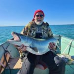 It was clear that the scale needed to be rebooted, or some other adjustments made, but rather than go through whatever process that would involve, I pulled out my scale, which I knew to be spot on, and it showed a reading of 62 pounds. Now mind you I would have preferred 76, but something had clearly gone a bit haywire with Chris’ scale, and when it comes to recording a fish of that size, it’s critical to be as accurate as possible.