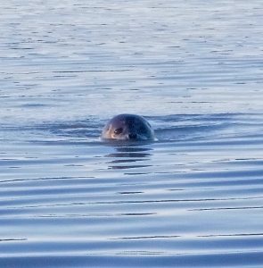 Unfortunately the wind had pushed the sea ice into the mouth of the river, and we were unable to get out to where the cod likely were. There was however a seal playing around the edge of the flow, so we shut down our motor and quietly watched him do his “seal thing” for about a half hour or so.